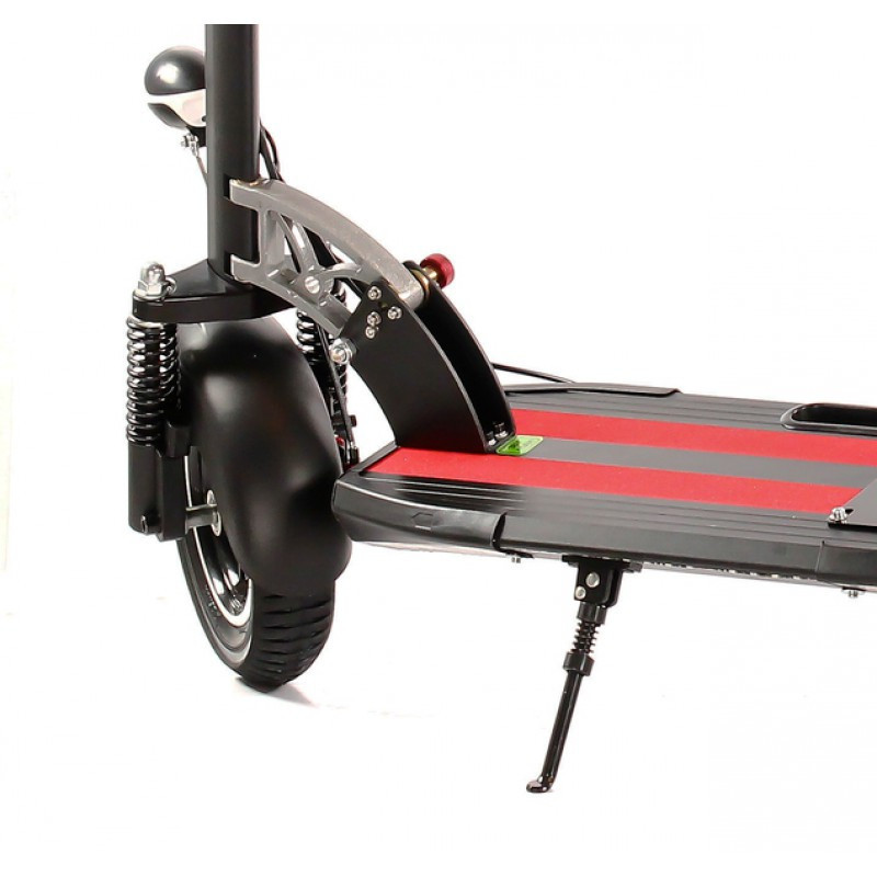 Самокат складывается не более, чем за 15 секунд. Его легко транспортировать, брать с собой в общественный транспорт, класть в багажник автомобиля или подниматься на лифте. При этом, чтобы припарковать электросамокат, его совсем необязательно складывать. Для этого можно выдвинуть специальную парковочную подножку, благодаря которой устройство легко и надежно паркуется на любой поверхности.