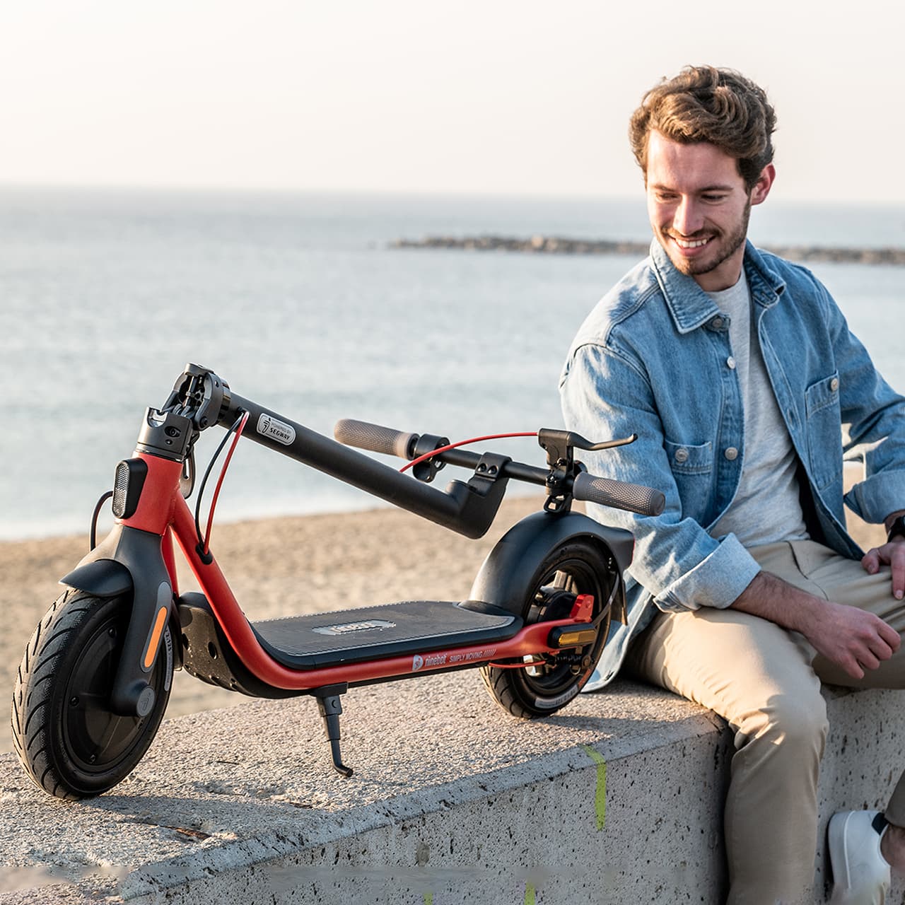 Ninebot KickScooter D38, как и его собратья из D-серии, комплектуется 10-дюймовыми пневматическими шинами с камерами внутри, обеспечивающими комфортное передвижение. Армированные покрышки устойчивы к износу, а запатентованная форма протектора обеспечивает надёжное сцепление с поверхностью.